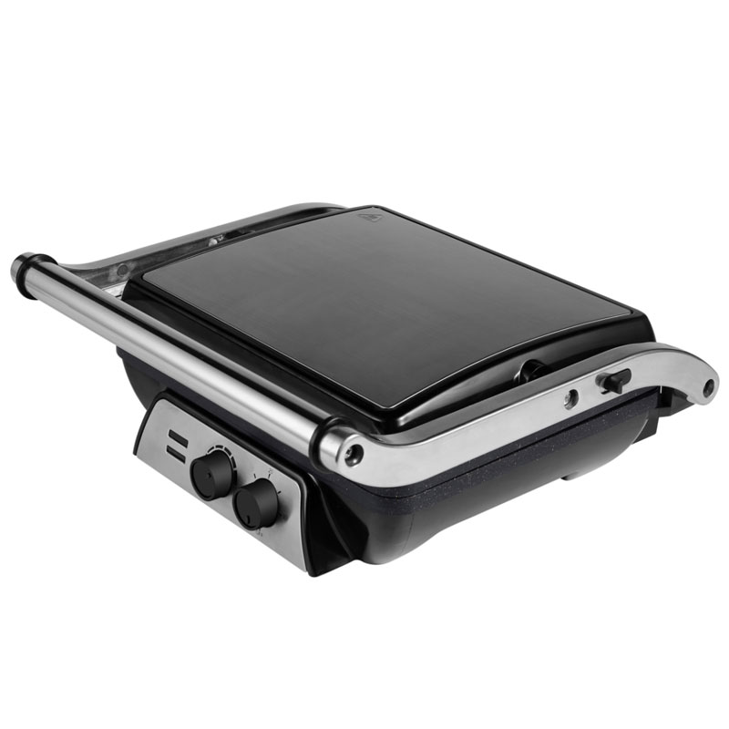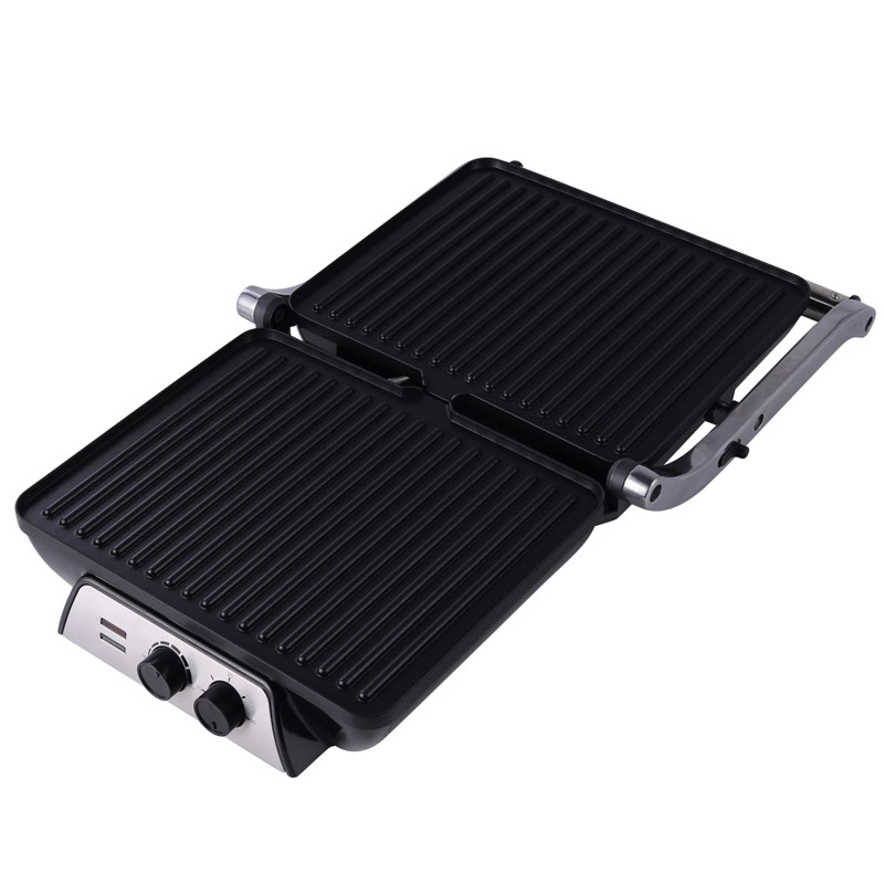 | Características | Mango seguro de tacto frío; Bandeja de goteo para recoger el exceso de aceite; Perilla de control de temperatura ajustable; Recubrimiento antiadherente para una fácil limpieza; El sistema de bisagra flotante se ajusta automáticamente a cualquier tamaño de tostadora, carne o refrigerio; Abrir 180°C como parrilla abierta; Luces de encendido y listo; Pies antideslizantes |